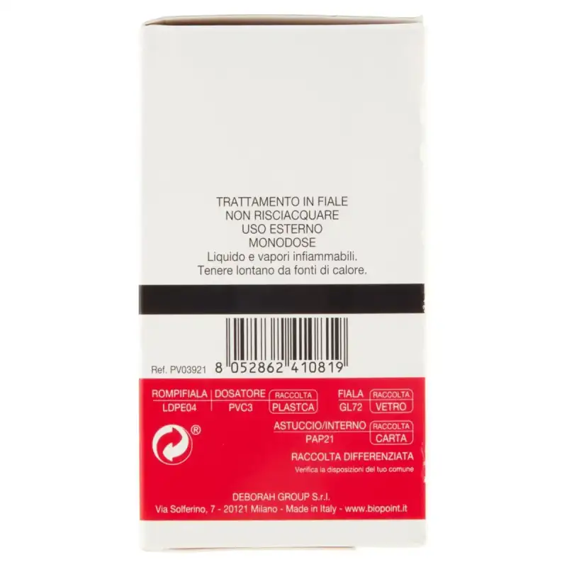 INFORMAȚII PRODUS: Păr predispus la cădere Sfaturi profesionale Aplicați conținutul unei fiole în fiecare zi uniform pe scalp, pe părul spălat și ușor uscat cu prosopul. Masați ușor pentru a favoriza absorbția. Nu clăti. Tratamentul este recomandat pentru cel puțin 8 săptămâni; pentru a menține rezultatele obținute de 1-2 ori pe săptămână. Spargeți flacoanele cu atenție folosind ruptorul de flacoane adecvat, aplicând o presiune ușoară. Puneți aplicatorul corespunzător pe flaconul deschis și apoi continuați cu aplicarea. Tratament în flacoane A nu se clăti Uz extern Doză unică.