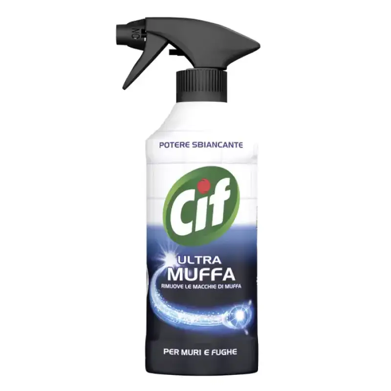 DESCRIERE: Cif Ultra Muffa 500 ml Cif Ultra Muffa este ideal pentru indepartarea petelor de mucegai si albirea rosturilor dintre placi. Poate fi aplicat pe diferite suprafețe precum pereți, gresie, perdele de baie. Sticla Cif Ultra Muffa este 100% reciclabila*. *Fără etichetă INFORMATII PRODUS: Instructiuni de utilizare: - A se folosi numai in spatii bine ventilate. - Pulverizati produsul uniform de la o distanta de 10-15 cm. - Părăsiți camera și lăsați timp de 15-20 de minute înainte de a clăti bine zona afectată. - Dacă este necesar, repetați operația din nou. - Dacă apare iritație, opriți imediat utilizarea și părăsiți camera. Duza de deschidere/închidere: Împingeți dispozitivul de blocare în jos în timp ce rotiți duza de pulverizare în poziția deschis. După utilizare, rotiți întotdeauna duza în poziția inițială de oprire. Unele dintre spray-urile noastre pot avea o clemă de siguranță roșie. În acest caz, înainte de prima utilizare, scoateți clema de siguranță pentru a permite mișcarea pârghiei de pulverizare. COMPOZIȚIE: Compoziție (Reg. 648/2004/EC):, <5% Albitori pe bază de clor, Agenți tensioactivi neionici, Parfum