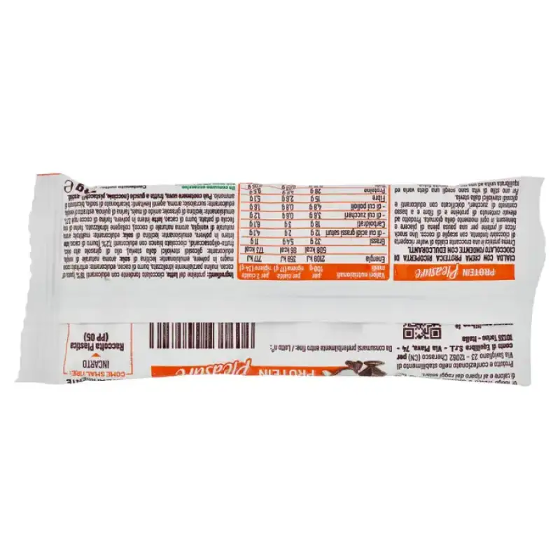 Cremă proteică într-o napolitană crocantă acoperită cu ciocolată neagră, cu fulgi de cocos. O gustare bogată în proteine pentru o pauză plină de plăcere și bunăstare, în orice moment al zilei. Produs cu conținut ridicat de proteine și fibre și conținut scăzut de zahăr, îndulcit cu îndulcitori și glicozide de steviol din stevia. Pentru un stil de viață sănătos, alege o dietă variată și echilibrată combinată cu activitate fizică regulată.