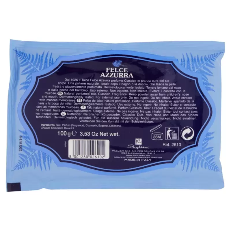 Compania Paglieri a fost înființată în 1876 în Alessandria pentru producția de parfumuri și tocmai în laboratorul său au fost dezvoltate amestecuri olfactive speciale Felce Azzurra (Fern Fern). Acest brand își propune să utilizeze parfumul ca o modalitate de bunăstare, începând de la îngrijirea corpului până la rufe și curățarea casei. O lume de note parfumate vă va învălui corpul și vă va parfuma hainele. Măiestria Felce Azzurra aduce vechea și înaltă artă de parfumerie în fiecare gest și ritual al vieții de zi cu zi: toate produsele liniei sunt dezvoltate cu o cunoaștere profundă a esențelor și o alchimie de combinații capabile să respire viață nouă în amintiri și emoții și să ofere o sentiment de bunăstare.