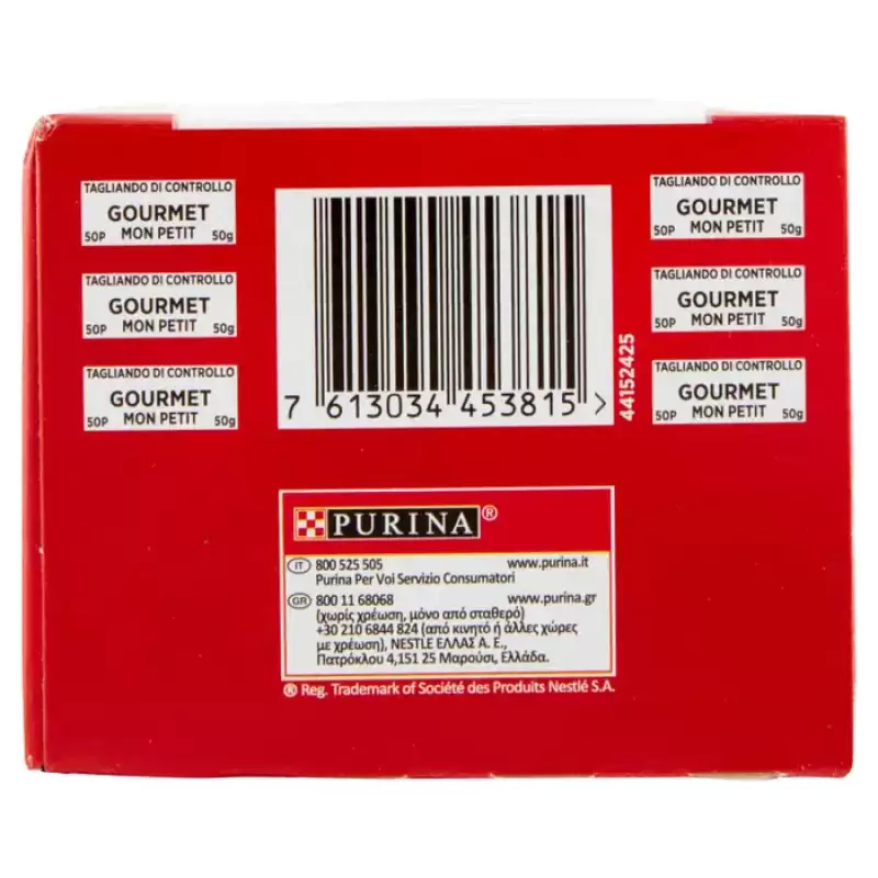 DESCRIERE: Gourmet Mon Petit Gatto cu ton, somon si pastrav punga 6x50g GOURMET Mon Petit Intense. O selecție atentă de rețete delicioase pentru a spori esența gustului. Simplu de deschis, ușor de servit și fără nicio risipă, într-o pungă concepută pentru a fi reciclabilă. Toate rețetele noastre delicioase sunt 100% complete și echilibrate pentru pisici adulte. Porții proaspete și apetisante. Preparat cu ingrediente de înaltă calitate. Fără adaos de coloranți. Fara conservanti si arome artificiale adaugate. - Conceput să fie reciclabil - 6x50g - Nouă experiență gustativă - Fileuri rafinate - Cu ton - Cu somon - Cu păstrăv - Într-un sos delicios INFORMAȚII PRODUS: Rație zilnică recomandată și instrucțiuni de utilizare: pentru o pisică adultă care cântărește aproximativ 4 kg, administrați 3 sau 4 plicuri pe zi cel puțin în 2-3 mese separate. Rațiile medii zilnice pentru pisicile adulte se bazează pe pisici cu activitate fizică moderată în medii cu temperatură normală. Cantitățile zilnice recomandate trebuie modificate în funcție de nevoile individuale, pentru a vă menține pisica într-o condiție corporală sănătoasă și zveltă. Se serveste la temperatura camerei. Lăsați întotdeauna apă proaspătă și curată disponibilă.
