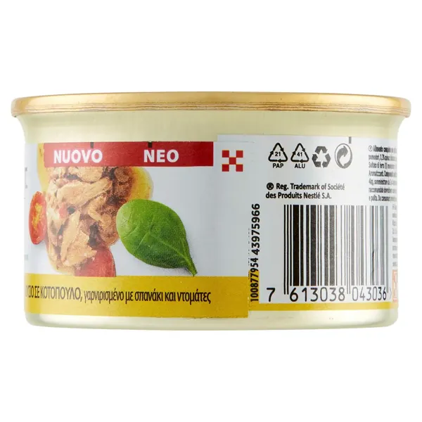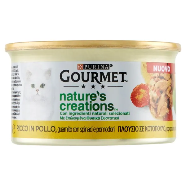 GURMET Hrana pentru pisici Nature's Creation File de conserve cu pui 85g - Nou - Cu ingrediente naturale selectate - Bogat in Pui, garnisit cu spanac si rosii