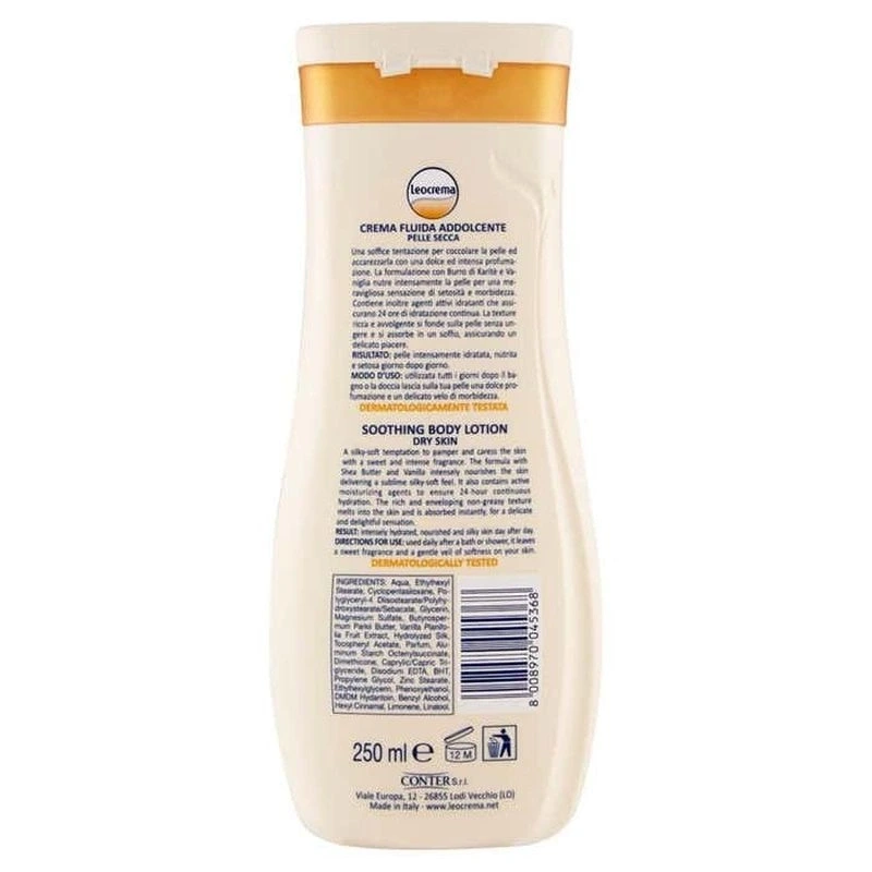 DESCRIERE: O ispita moale pentru a se strange si mangaie pielea cu un parfum dulce si intens. Formularea cu unt de shea si vanilie hraneste intens pielea pentru un sentiment minunat de moliciune matasoasa. Acesta contine, de asemenea, hidratare agenti activi care asigura 24 de ore de hidratare continua. Cele mai bogate si care inveleste topiturilor textura pe piele, fara gras si absoarbe intr-un fulger, asigurand o placere delicata. Rezultat: Intens hidratat, hranit si matasos zi dupa zi. testat dermatologic. INFORMATII PRODUS: Utilizare: utilizati in fiecare zi dupa baie sau dus frunze pe piele un parfum dulce si un voal delicat de moliciune. COMPOZITIE: Aqua, etilhexil Stearate, CYCLOPENTASILOXANE, poligliceril-4 diizostearat / Polyhydroxystearate / sebacat, Glicerina, sulfat de magneziu, Butyrospermum parkii Unt, extract de vanilie planifolia de fructe, Hidrolizat de matase, acetat de tocoferil, Parfum, aluminiu amidon octenil succinat, dimeticon, caprilic / capric, EDTA disodic, BHT, propilen glicol, stearat de zinc, Ethylhexylglycerin, fenoxietanol, DMDM Hydantoin, alcool benzilic, Hexyl Cinnamal, limonene, linalool
