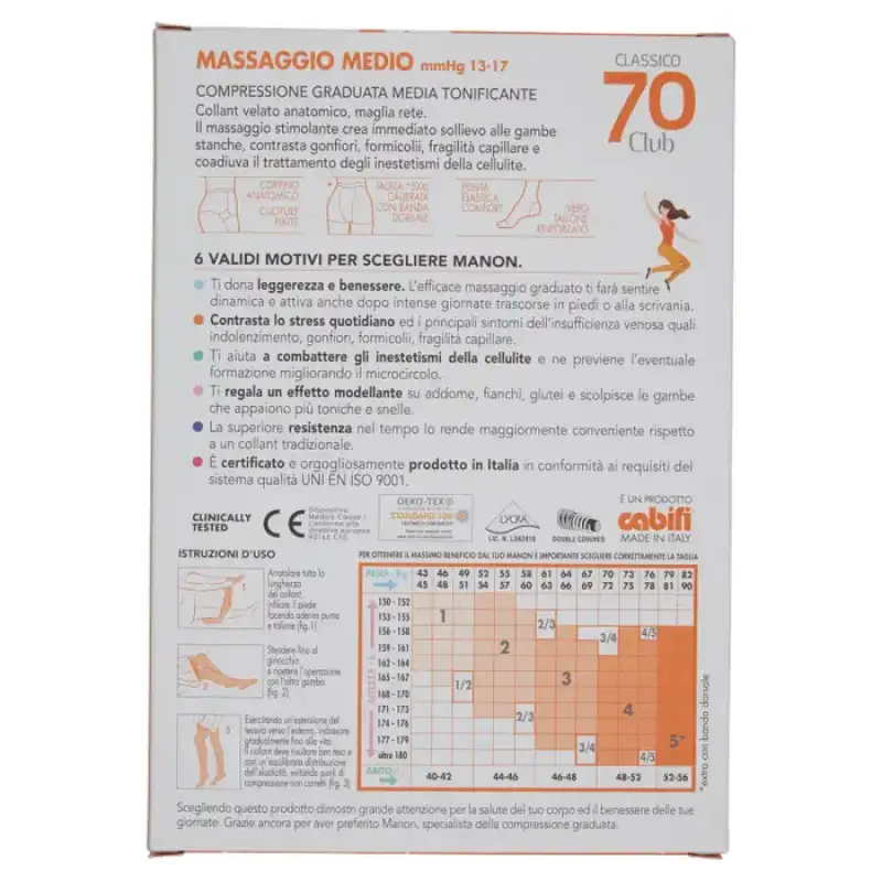 Ciorapi de relaxare cu compresie gradata, care garanteaza o usurare imediata a picioarelor obosite, contracarand umflarea si furnicaturile. De asemenea, modelează silueta și este eficient împotriva celulitei. Masaj mediu mmhg 13-17. Testat clinic.