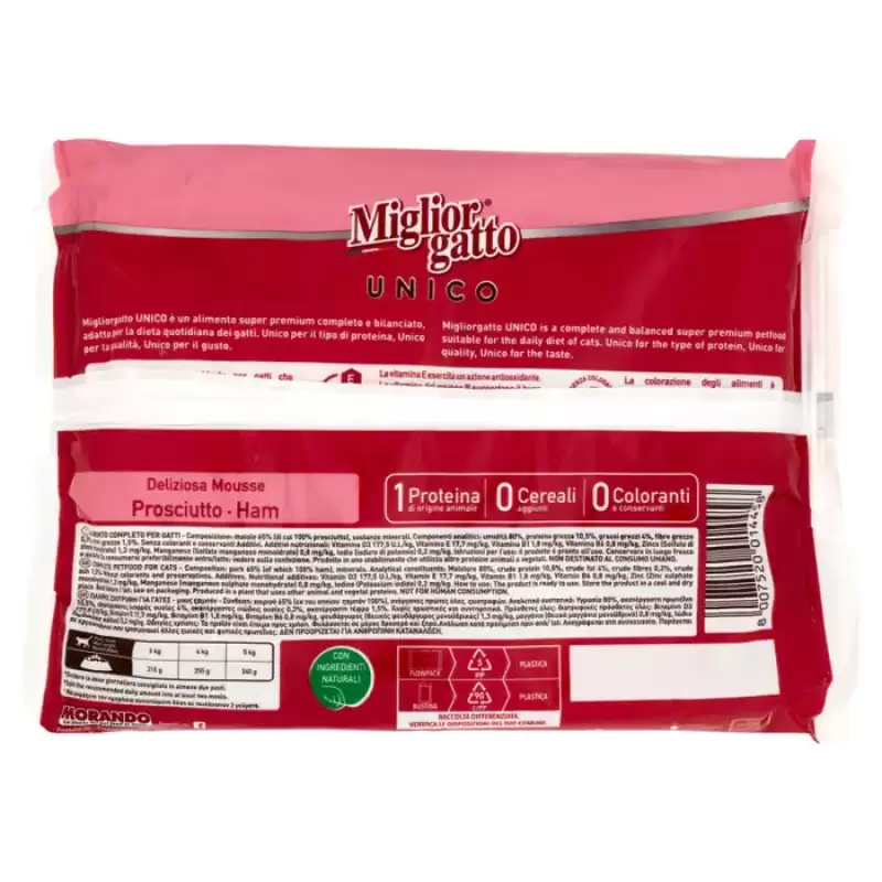Miglior Gatto Unico Delicious Mousse de Sunca 4 x 85 g Bax 12 buc.
