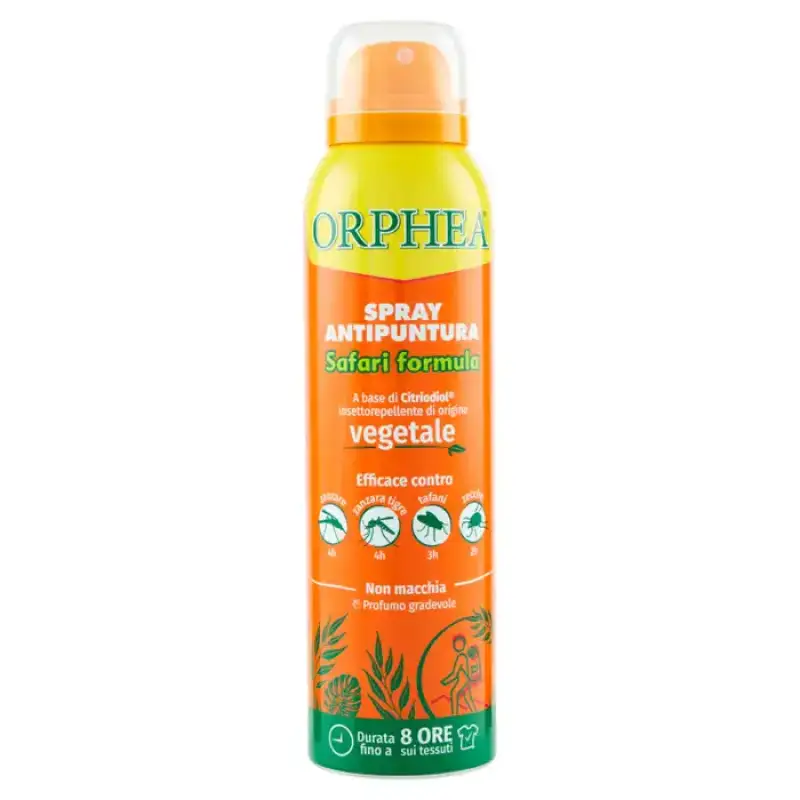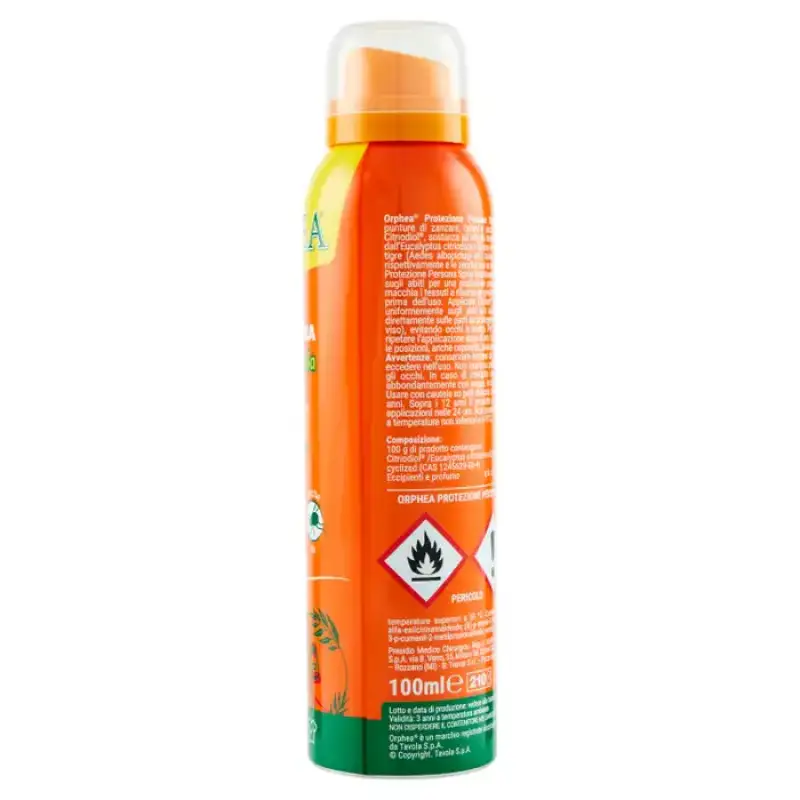 Spray-ul împotriva insectelor de protecție personală Orphea protejează împotriva mușcăturilor de țânțari, căpușe și căpușe. Formularea sa se bazează pe Citriodiol, o substanță cu activitate insectică de origine vegetală obținută din Eucalyptus citriodora, iar eficacitatea sa este testată și împotriva țânțarului tigru (Aedes albopictus) și calului, cu timpi de protecție de 4, respectiv 3 ore și căpușe cu un timp de protecție mai mare de 2 ore. Spray-ul de respingere a insectelor de protecție personală Orphea poate fi aplicat direct pe îmbrăcăminte pentru o protecție prelungită de aproximativ 8 ore. Nu umedă, nu pătează țesăturile și eliberează un miros plăcut.
