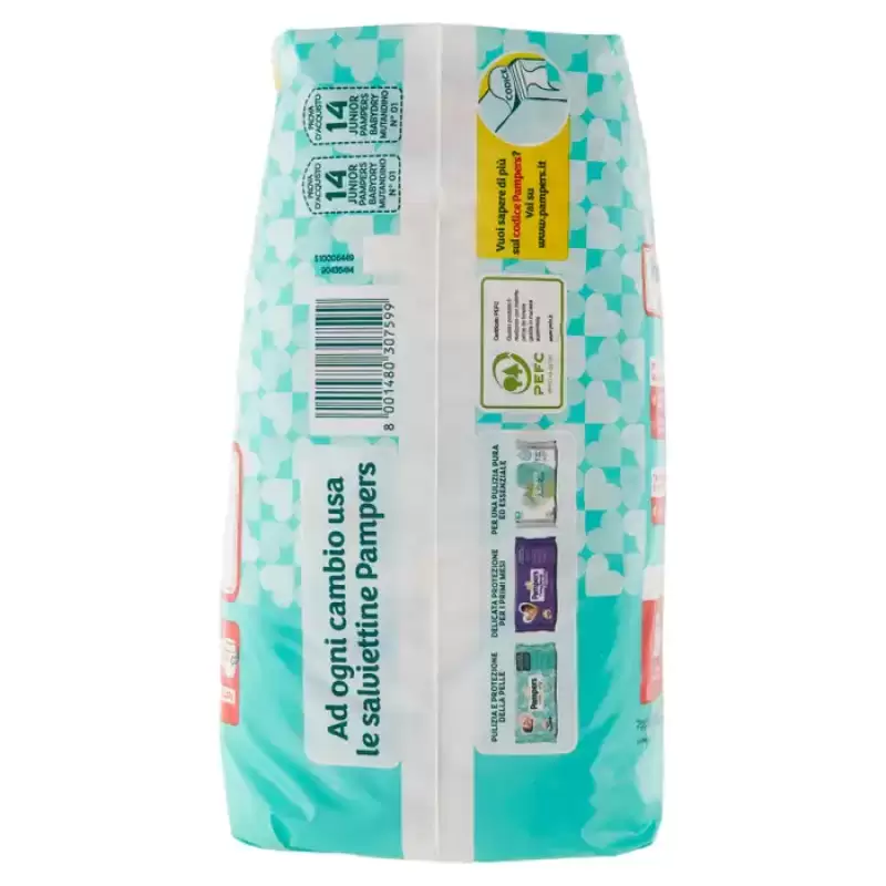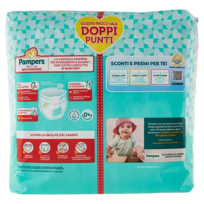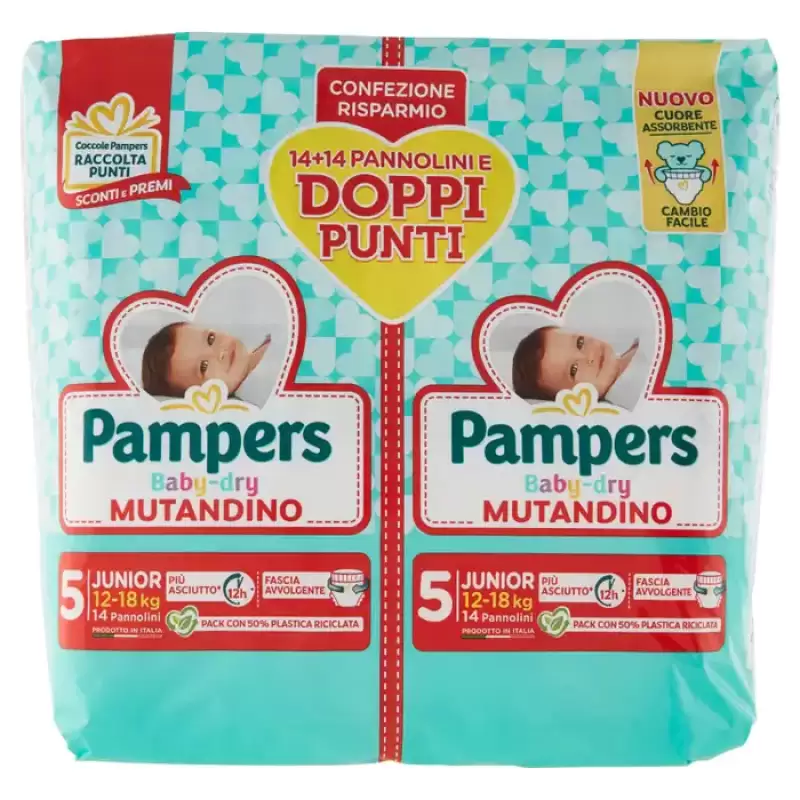 DESCRIERE: Chiloți Junior Pampers Baby-dry 14 + 14 buc Chiloți Pampers Baby-dry Cea mai învăluitoare și sigură îmbrățișare Pampers**, cu toată uscăciunea baby-dry! **se referă la întreaga linie de Chiloți, inclusiv Chiloți Progressi Cu bandă de închidere Uscător* 12h - Pampers garantat absorbție - Uscat care respira Confortabil și confortabil - Banda elastică koala - Bariere laterale de protecție Respirabil și subțire - Canale active *până la 12 ore, comparativ la scutece pentru chiloți de alte mărci Testat dermatologic 0% din alergeni UE*** ***așa cum este reglementat în Regulamentul UE privind cosmeticele (CE) Nr. 1223/2009 Descoperiți ușurința de a schimba 1 Ușor de îmbrăcat 2 Micul inimă Pampers se potrivește în față 3 Poate fi îndepărtat cu o rupere 4 Pentru a-l arunca, rulați-l și închideți-l cu banda adecvată COMPOZIȚIE: Loțiune Ingrediente:, Petrolatum, Alcool stearilic, Paraffinum Liquidum, Extract de frunze de Aloe Barbadensis