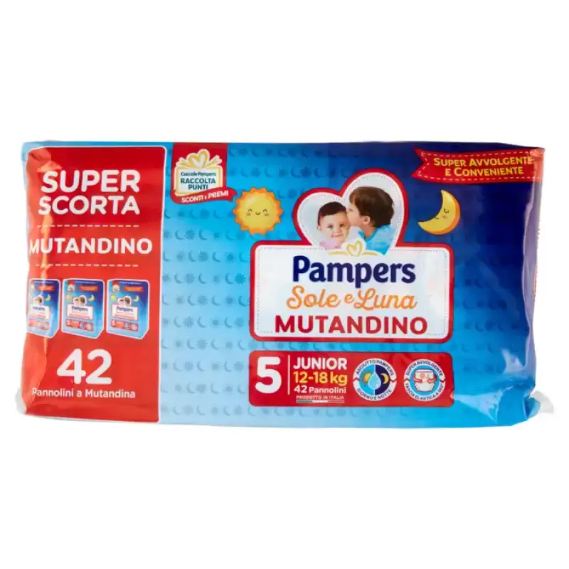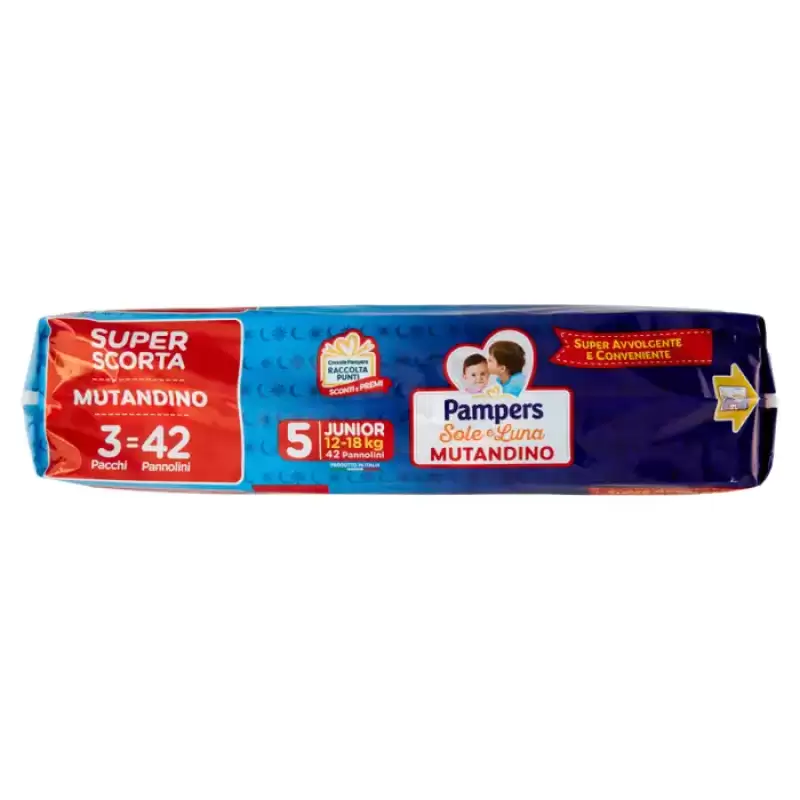 DESCRIERE: Chiloți Pampers Sole e Luna Junior 42 buc Chiloți Pampers Sole e Luna Brațul Pampers super învăluitor și sigur, cu toată comoditatea Sole e Luna! Schimbare usoara Imbratisare super invelitoare Poate fi indepartata cu o lacrima Cu o grafica unica Super comoda. COMPOZIȚIE: Loțiune Ingrediente:, Petrolatum, Alcool stearilic, Paraffinum Liquidum, Extract de frunze de Aloe Barbadensis