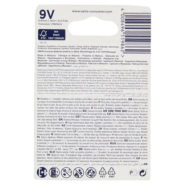 Varta High Longlife Power 9V 6LP3146 Alkaline 4 buc, Bax 10 set