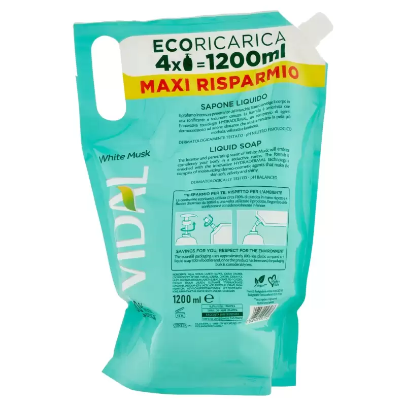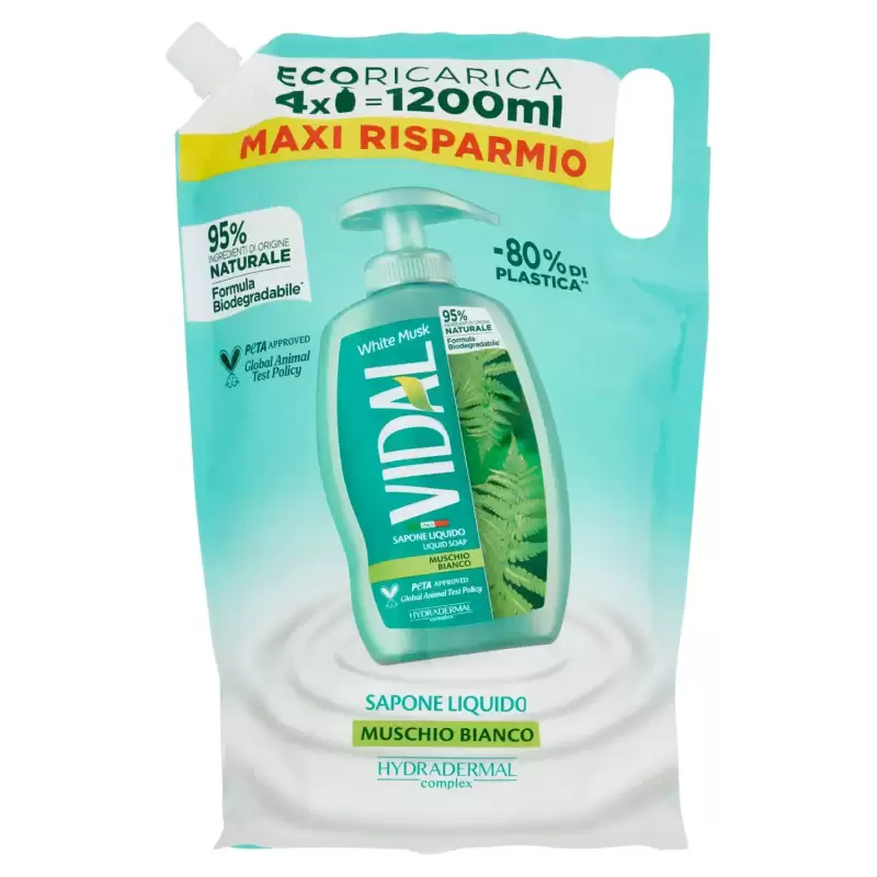 Complexul special alcătuit din ingrediente dermato-cosmetice cu acțiune hidratantă protejează pielea, o catifelează și o face mai luminoasă. Sortimentele de gel de duș, săpun lichid, cosmetice pentru păr, spumă de ras, deodorant și celelalte produse de îngrijire Vidal sunt soluțiile adecvate pentru o igienă 100% italienească.