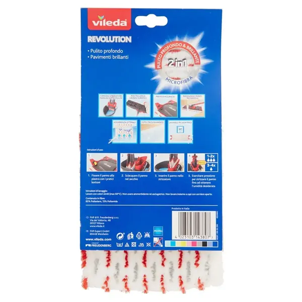 DESCRIERE: Înlocuire Vileda Revolution - Curățare în profunzime - Pardoseli strălucitoare Curățare în profunzime și strălucitoare Microfibră 2 în 1 Stoarcetă convenabilă pentru mâini curate și uscate Placă largă Suprafețe mari Agățare comodă Atinge cele mai dificile puncte Absorbție optimă Toate tipurile de pardoseală Se spală la mașină la 60 °