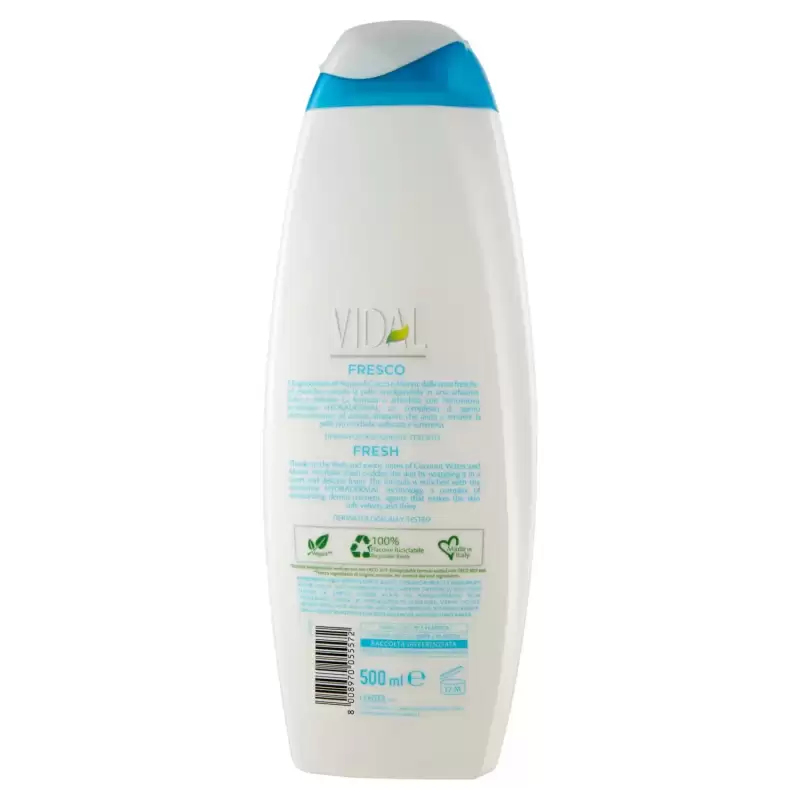 Complexul special alcătuit din ingrediente dermato-cosmetice cu acțiune hidratantă protejează pielea, o catifelează și o face mai luminoasă. Sortimentele de gel de duș, săpun lichid, cosmetice pentru păr, spumă de ras, deodorant și celelalte produse de îngrijire Vidal sunt soluțiile adecvate pentru o igienă 100% italienească.